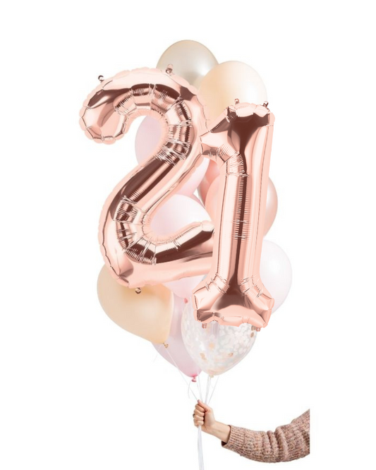 Rosewood Balloon Set and Foil Number Filled with Helium