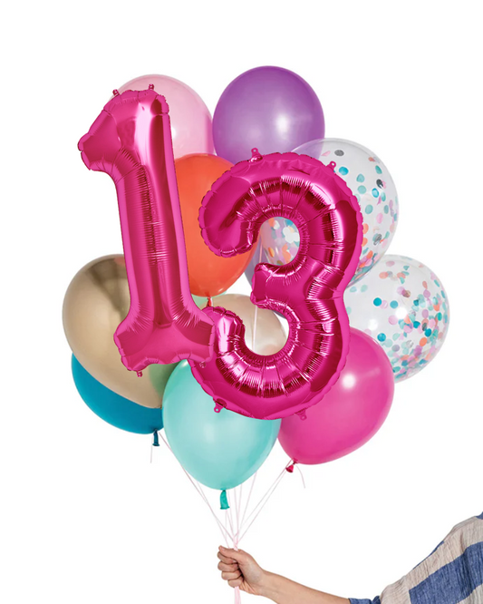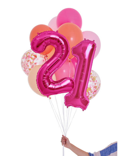 Pink Shimmer Balloon Set and Foil Number Filled with Helium