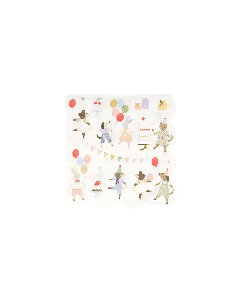 From our friends Meri Meri, bright and fun animal characters adorn these playful napkins.