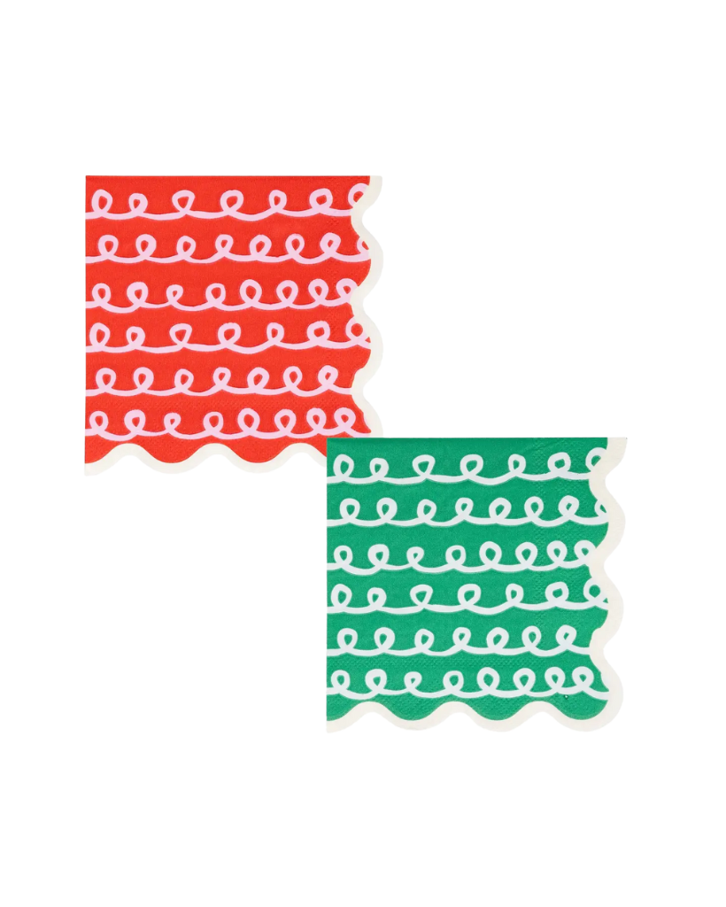Designed with a frosting theme for your gingerbread party, these red and green napkins will perfectly complement your Christmas party setup.