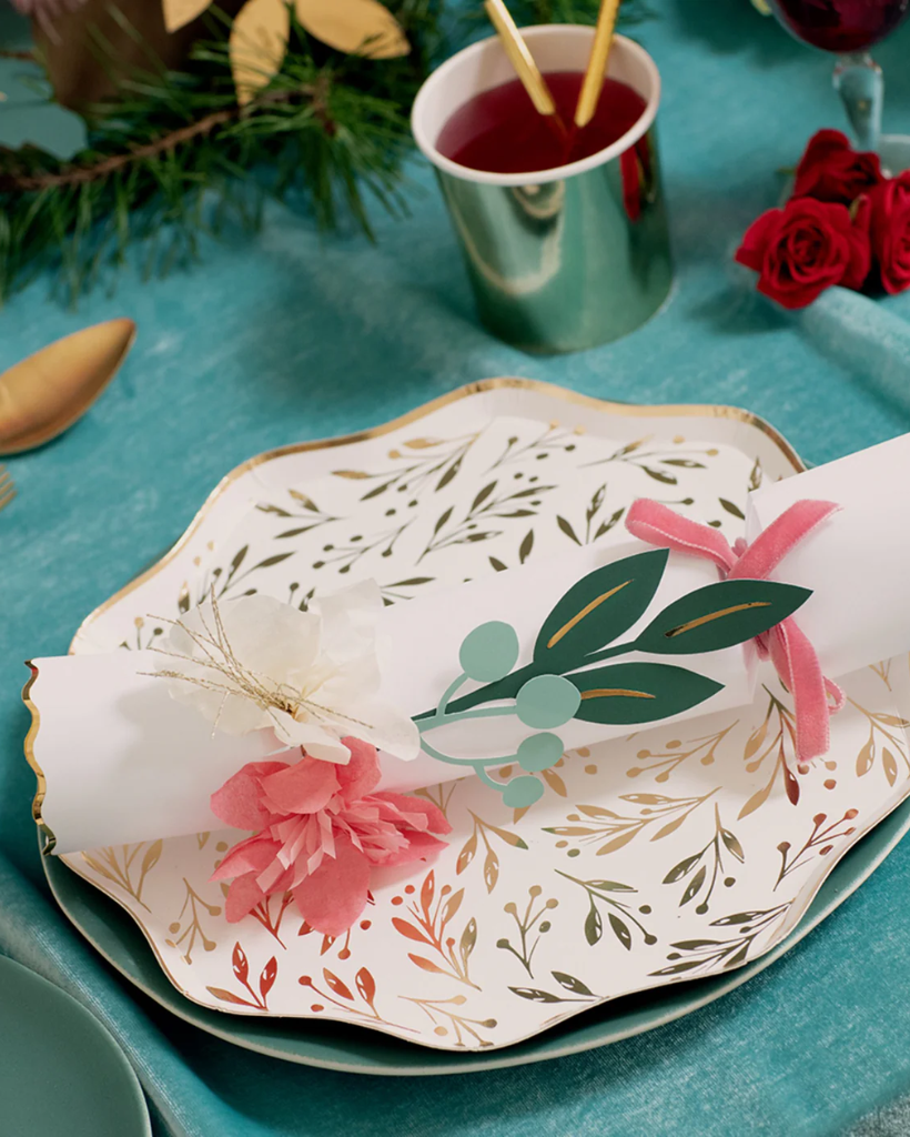 Adorned with beautiful tissue paper flower designs and gold foil bordered scallop edges, these Christmas crackers will look absolutely amazing on your Christmas table.