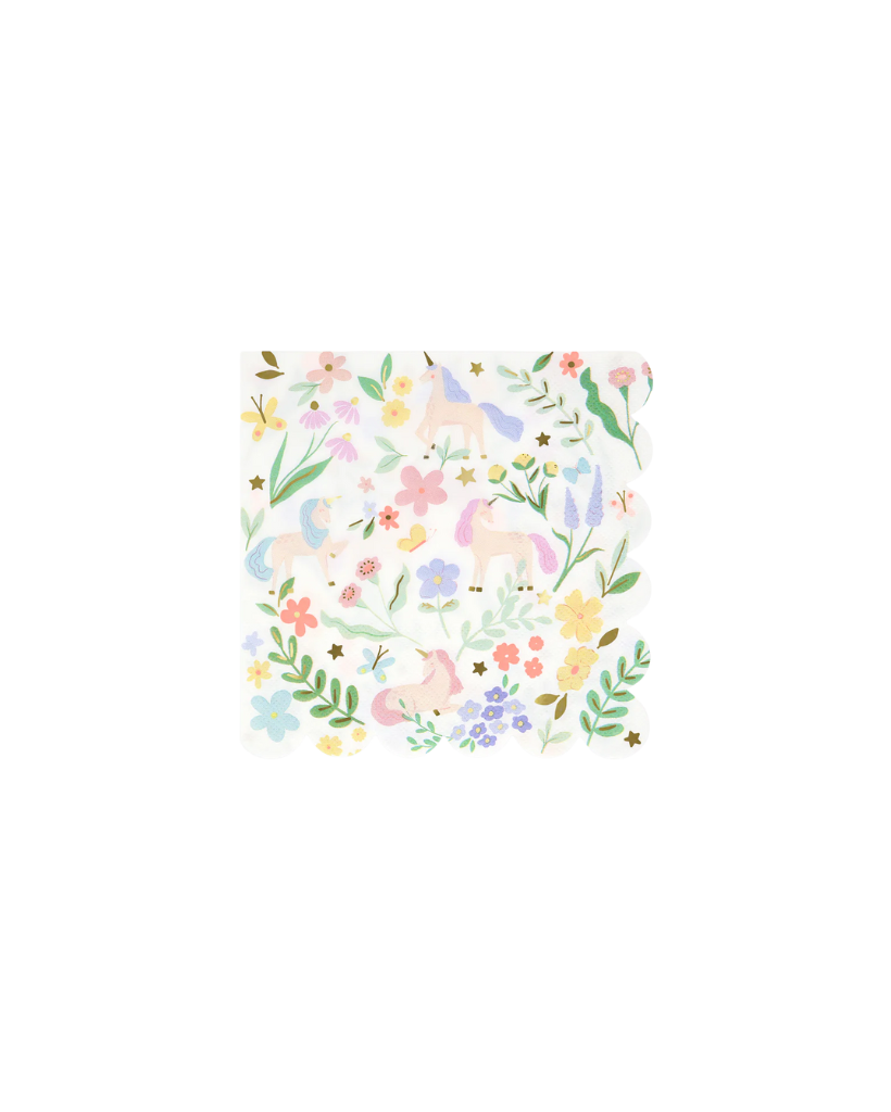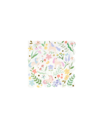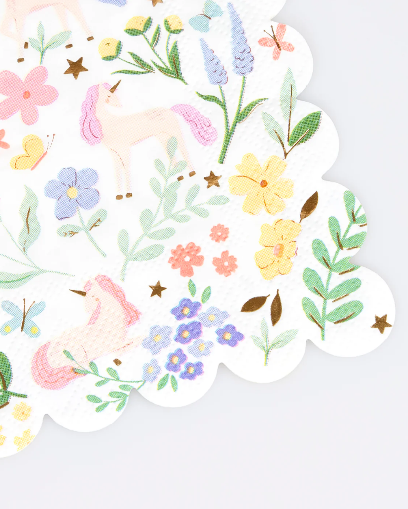 These small paper napkins, featuring a stylish scalloped border and shiny gold foil details, will instantly make your unicorn or princess party look so magical!