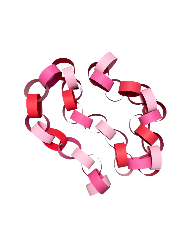Our kits contain enough paper strips to make approximately 3m of traditional paper chains. Our kits can also be used to create paper heart garlands!