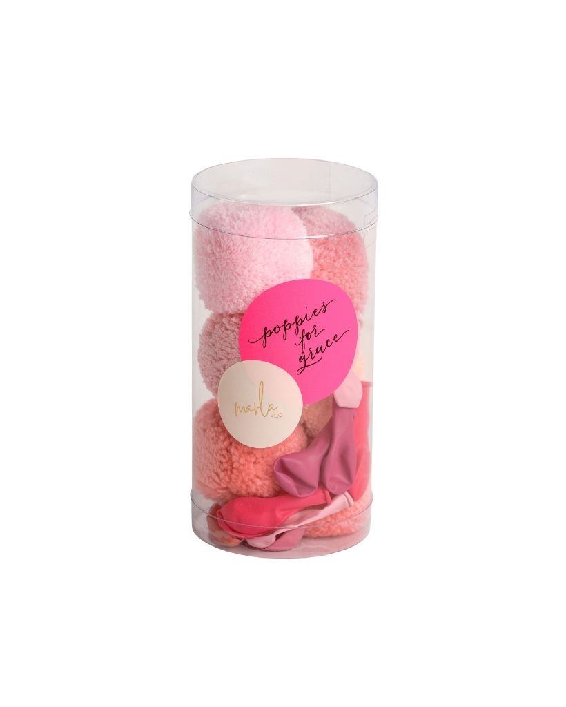 We have partnered with the gorgeous Marla & Co to bring you the loveliest pink shimmer pom poms and mini balloons to fill your cake stand with.