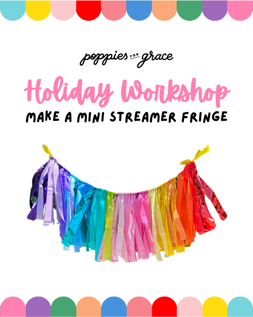 Get creative these school holidays and make your own mini version of our popular reusable streamer fringe. We’ll provide the colour, you bring your own vibe and creativity!